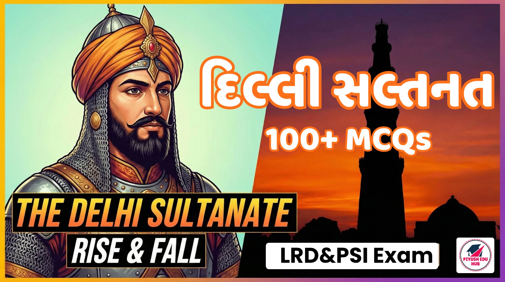 Delhi Sultanate MCQs દિલ્હી સલ્તનત MCQs For LRD & PSI Exam : દિલ્હી સલ્તનત (1206–1526) મધ્યકાલીન ભારતના ઇતિહાસનો મહત્વનો સમયગાળો હતો. તેની સ્થાપના કૂતુબુદ્દીન ઐબકે કરી હતી. આ સમયમાં ભારત પર તુર્કી અને અફઘાન શાસકોનું શાસન રહ્યું. દિલ્હી સલ્તનતમાં કુલ પાંચ વંશો શાસન કરતા હતા: ગુલામ વંશ, ખિલજી વંશ, તુગલક
